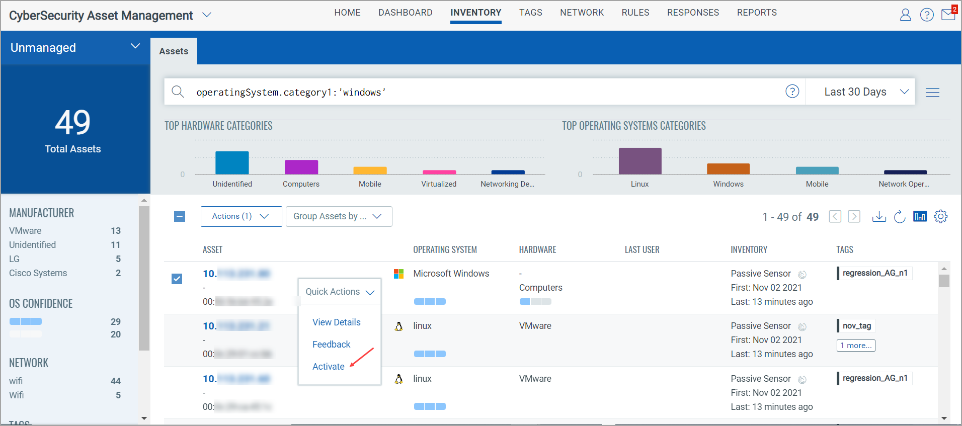 You can configure how you want to categorize your assets discovered by the sensors while monitoring traffic flow. All these assets are listed in the Assets tab of Global AssetView/CyberSecurity Asset Management.