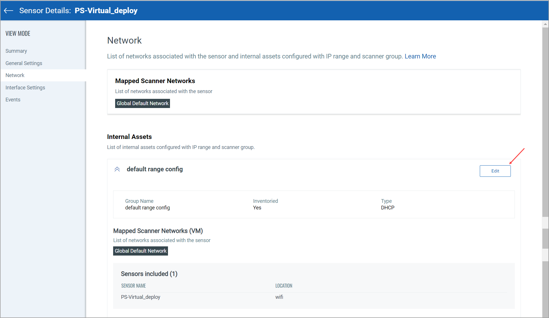 Once you've added the Internal Asset Groups with the Network and IP range tags and if you want to edit these configuration settings, then go to the Sensor Details tab and edit the configuration.